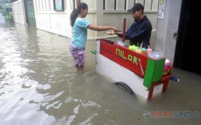 Banjir Merendam Pemukiman Warga di Kampung Makasar Jakarta Timur