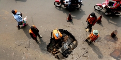 Kemacetan Akibat Jalan Ambles di Sudirman