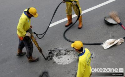 Satgas Bina Marga DKI Jakarta Tambal Jalan Berlubang di Senen