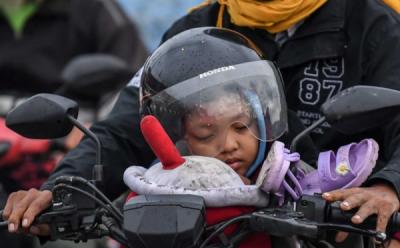 Potret Pemudik Motor Istirahat Seadanya di Jalur Pantura