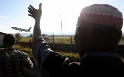 Momen Keluarga Melambaikan Tangan ke Pesawat yang Membawa Calon Haji
