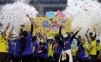Selebrasi Atlet Voli Putri Bandung BJB Tandamata saat Menjuarai Proliga 2022