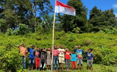 Anak-Anak di Papua Kibarkan Bendera Merah Putih Jelang HUT ke-76 RI