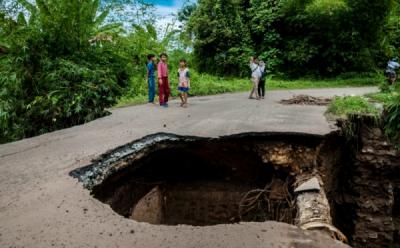 Jembatan Penghubung Antar Desa di Lebak Ambles, Lubang Sebesar Mobil Terlihat