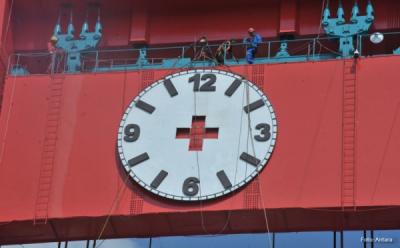 Melihat Pemasangan Jam Analog Seberat 300 Kg di Tiang Jembatan Ampera Palembang