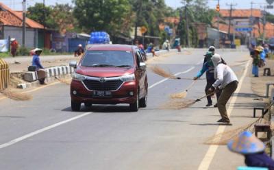 Mengais Uang Sedekah Menggunakan Sapu di Jembatan Sewo Jalur Pantura