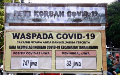 Cegah Penyebaran Covid-19, Pemkot Administrasi Jakpus Pasang Replika Peti Mati di Pasar Johar Baru