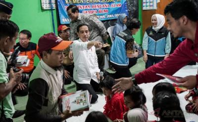 Presiden Jokowi Bagikan Buku kepada Anak-anak Korban Gempa Banjarnegara
