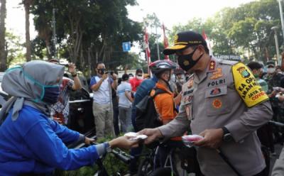 Polda Metro dan Kodam Jaya Bagikan Masker di Bundaran HI