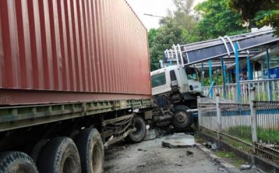 Lepas Kendali, Truk Kontainer Tabrak Halte Transjakarta di Penjaringan