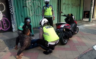 Petugas Kepolisian Bantu Korban Kecelakaan Motor