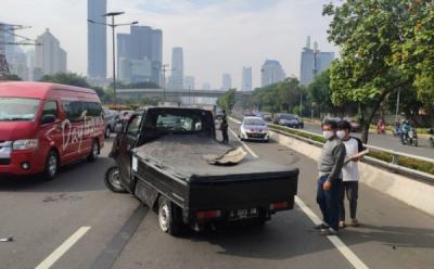 Polisi Tangani Kecelakaan Pecah Ban di Tol Dalam Kota