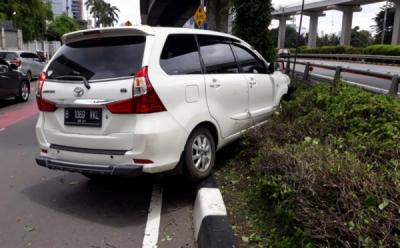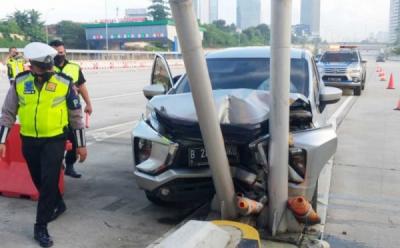 Mobil Expander Tabrak Tiang Gerbang Tol Cilandak