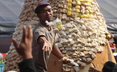 Warga Berebut Gunungan Durian di Kediri