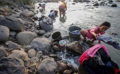 Sumur Mulai Kering, Warga Pilih Mencuci di Sungai Cipamingkis