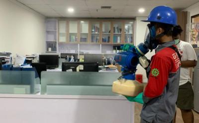Kantor Kemenkominfo Disemprot Cairan Disinfektan