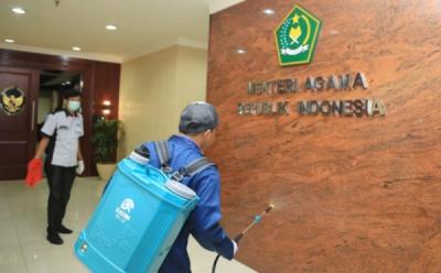 Gedung Kementerian Agama Disemprot Cairan Disinfektan