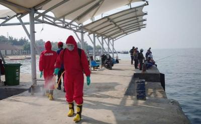 Cegah Penyebaran Covid-19, Pelabuhan Pulau Untung Jawa Disemprot Disinfektan