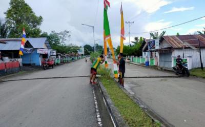 Persiapan HUT RI, Prajurit TNI Bersama Warga Pasang Umbul-Umbul di Jalan