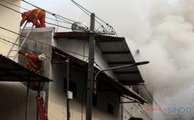 Petugas Damkar Berjibaku Padamkan Api yang Melalap Gudang Penyimpanan Barang