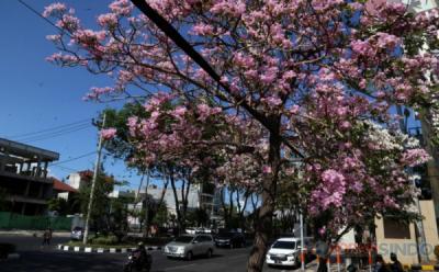 Mirip di Jepang, Bunga Tabebuya di Pusat Kota Surabaya Bermekaran