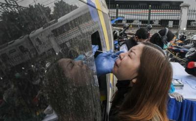 Swab Test Acak Penumpang KRL di Stasiun Tangerang