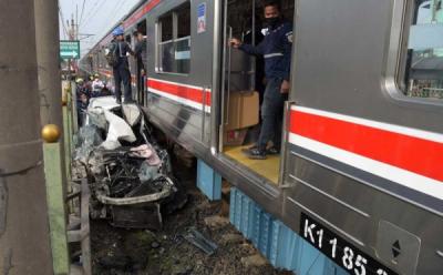 Evakuasi Mobil Tertabarak KRL di Depok, Begini Kondisinya