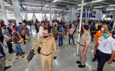 Penerapan Jaga Jarak dan Antrean Penumpang di Stasiun Bogor