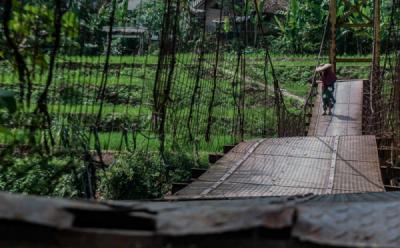 Potret Siswa di Lebak Banten Menyeberangi Jembatan Rusak Menuju Sekolah