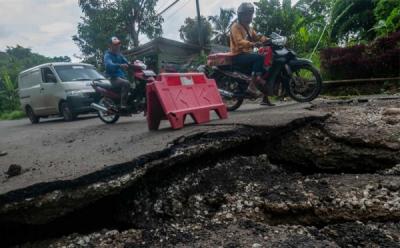 Jalan Ambles di Lebak Banten Akibat Hujan Deras