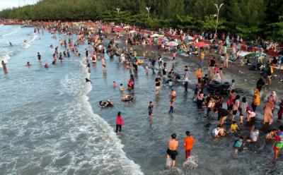Pantai Anyer Penuh Sesak Wisatawan saat Libur Lebaran
