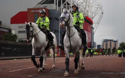 Polisi Berkuda Patroli di Luar Stadion Old Trafford