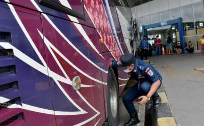 Petugas Cek Kelayakan Bus AKAP di Terminal Pulo Gebang