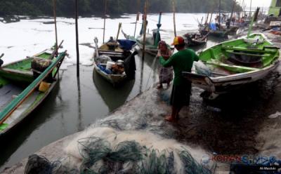 Potret Aktivitas Nelayan di Tengah Sungai Tambak Wedi yang Penuh Limbah Busa Putih