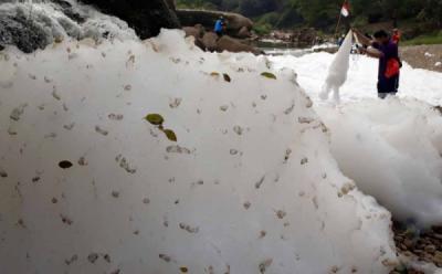 Menjala Ikan di Curug Parigi yang Tercemar Busa Limbah Pabrik