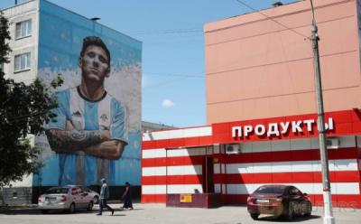 Mural Raksasa Bergambar Lionel Messi Hiasi Tembok Bangunan di Rusia
