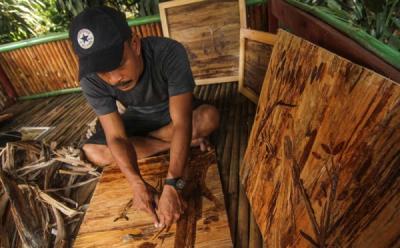 Kreatif, Lukisan Ini Terbuat dari Pelepah Pisang Kering