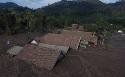 Foto Udara Penampakan Rumah Warga Tertimbun Material Gunung Semeru