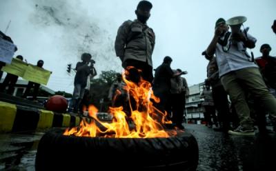 Mahasiswa Makassar Bakar Ban saat Unjuk Rasa Tolak Kenaikan Harga BBM