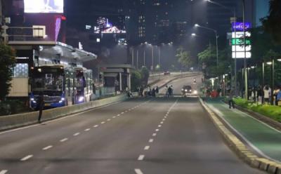 Pemberlakuan Crowd Free Night Jalam Sudirman-Thamrin Sepi
