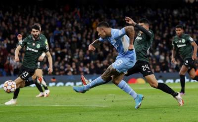 Selebrasi Pemain Man City Bantai Sporting Lisbon di Liga Champions