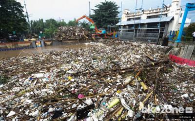 Gunungan Sampah Menumpuk di Pintu Air Manggarai