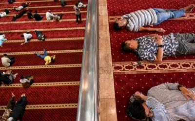 Beristirahat Usai Sholat Jumat di Masjid Istiqlal