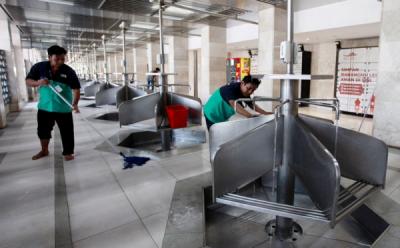 Pekerja Bersih-Bersih Masjid Istiqlal Jelang Bulan Suci Ramadhan