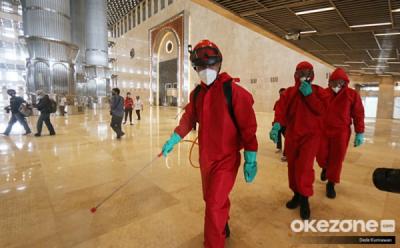Jelang New Normal, Area Dalam Masjid Istiqlal Disemprot Disinfektan