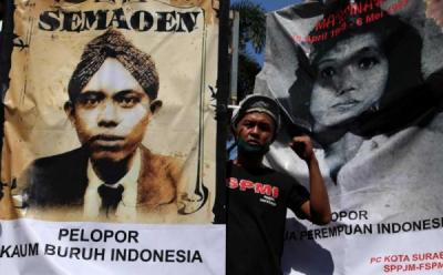 Bawa Poster Marsinah, Buruh Jawa Timur Desak Pemerintah Cabut Omnibus Law