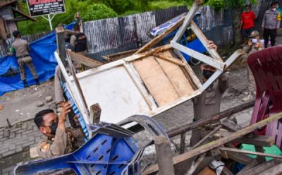 Petugas Tertibkan PKL Pelanggar PPKM Darurat di Medan