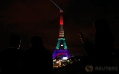 Berduka Penembakan di Orlando, Menara Eiffel Dipasangi Lampu Warna-warni