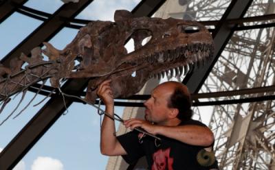 Intip Pekerja Merekonstruksi Fosil Dinosaurus di Menara Eiffel