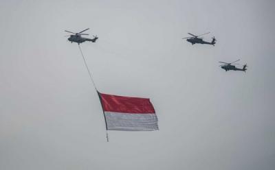 Peringatan HUT Ke-76 TNI, Helikopter Terbang di Atas Monas